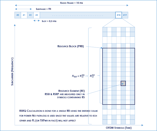 RSSI – Represents the entire received power including the wanted power from the serving cell as well as all co-channel power and other sources of noise and it is related to the above parameters through the following formula: